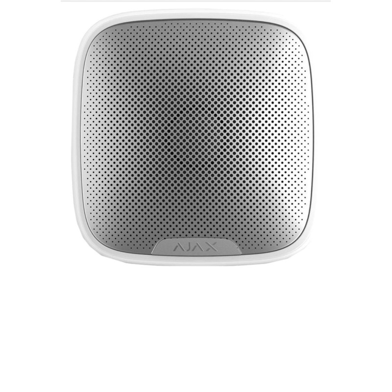 StreetSiren Fibra — дротова сирена системи Ajax. Оснащена LED-рамкою та п’єзоелектричним сповіщувачем, який може видавати звук гучністю до 113 дБ. Може бути встановлена зовні та всередині приміщень. Працює у складі системи Ajax, обмінюючись даними з хабом через захищений протокол дротового зв’язку Fibra. Дальність зв’язку — до 2000 метрів у разі під’єднання крученою парою U/UTP cat.5.